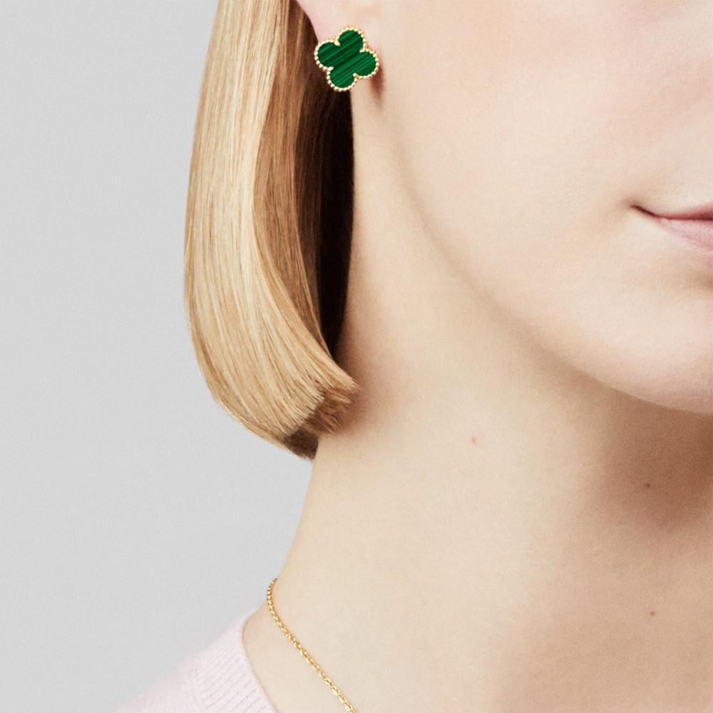 ارتقي بإطلالتك مع حلق فان كليف الأخضر بتصميمه البسيط والأنيق الذي يعكس الذوق الرفيع. بتفاصيل مستوحاة من الطبيعة وماستر كواليتي طبق الأصل.