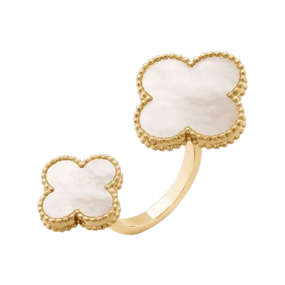 استمتعي بإطلالة راقية مع خاتم فان كليف وردتين لون أبيض، الذي يُعد من أجمل وأفضل خواتم فان كليف بتصميمه الفريد الذي يعكس الأنوثة والرقي. يجسد هذا الخاتم الفاخر الأناقة الهادئة من خلال وردتين باللون الأبيض الناعم، لتكملي إطلالتك بلمسة ساحرة تناسب جميع المناسبات.