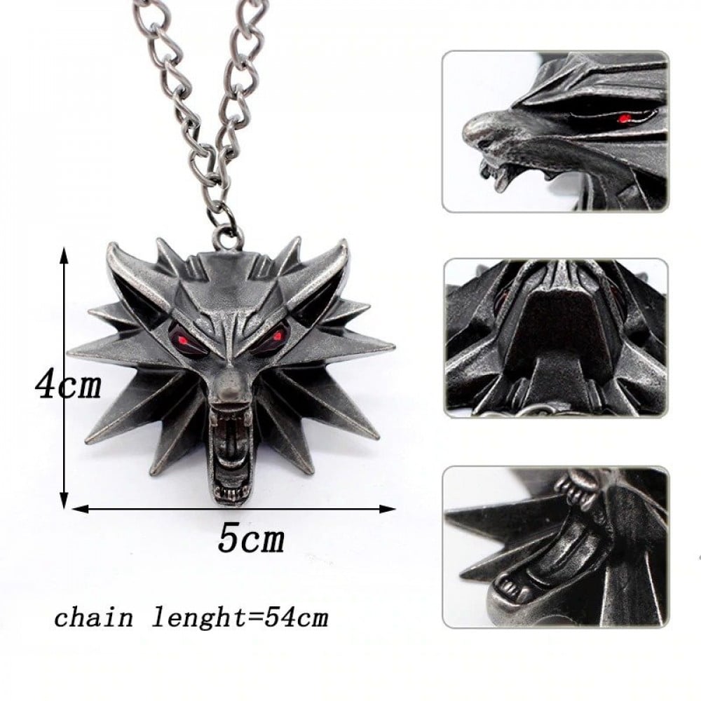 سلسال رجالي لعبة / مسلسل ويتشر بقلادة شكل رأس ذئب بعيون حمراء