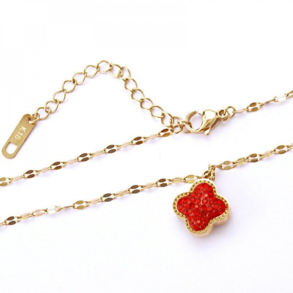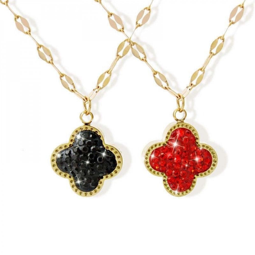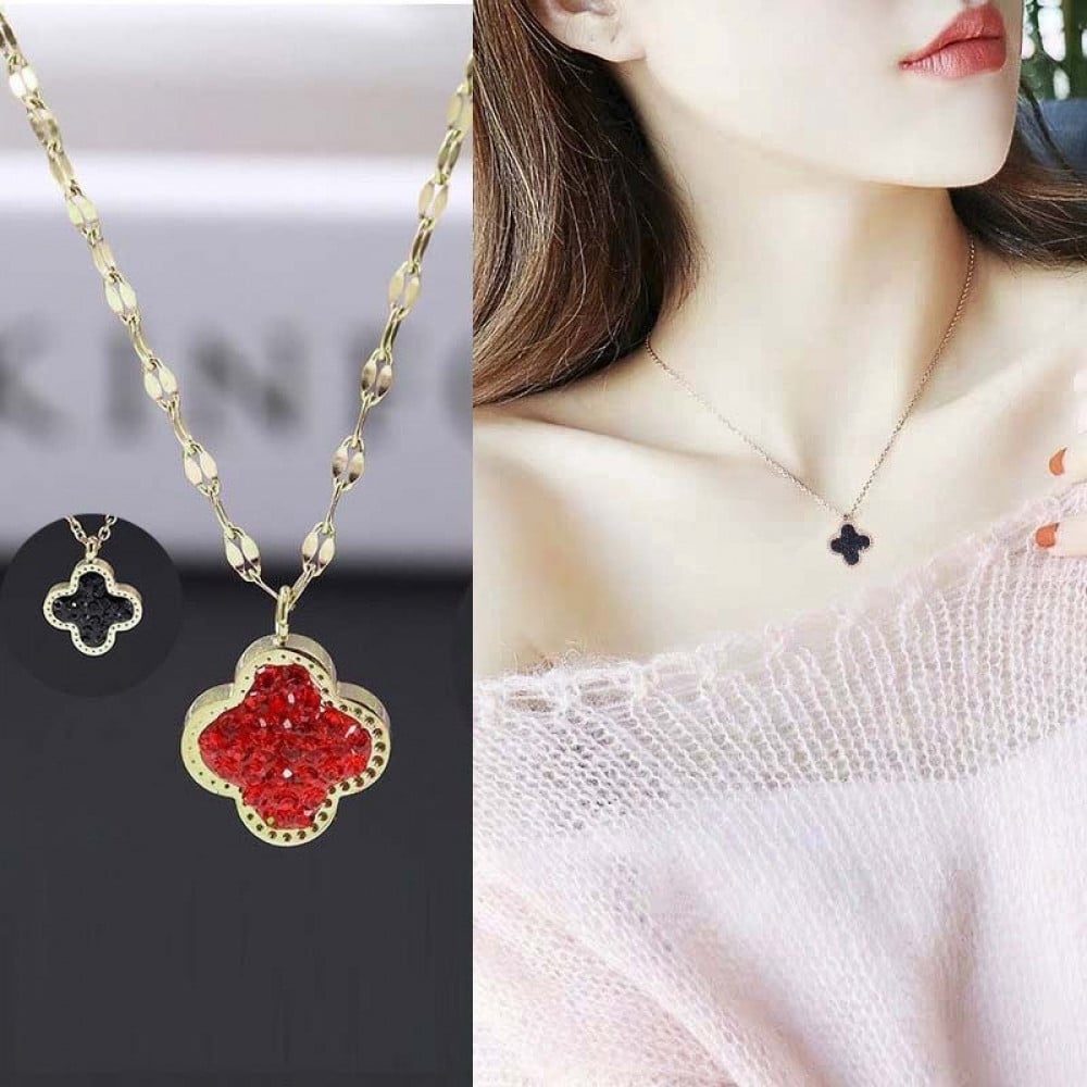 سلسال كليف بوردة الكلوفر وجهين الوجه الاول احمر والوجه الثاني لون اسود بطبقة من المينا المتلألئة