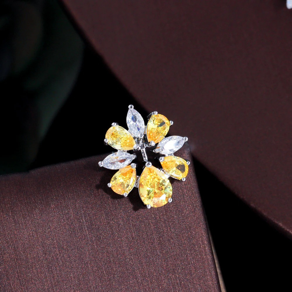 طقم زركون شكل وردة اصفر قطعتين مكون من سلسال وحلق