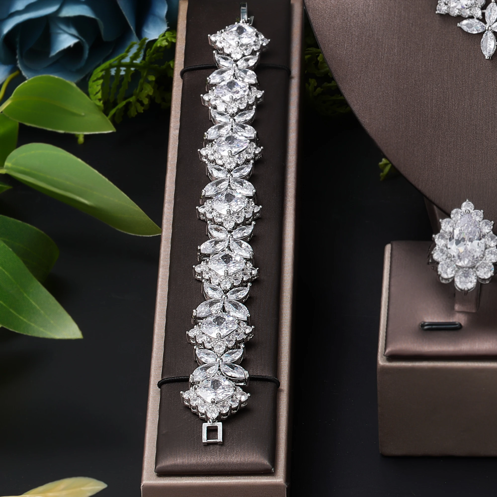 مواصفات طقم زركون فضي راقي و فخم جداً 4 قطع
