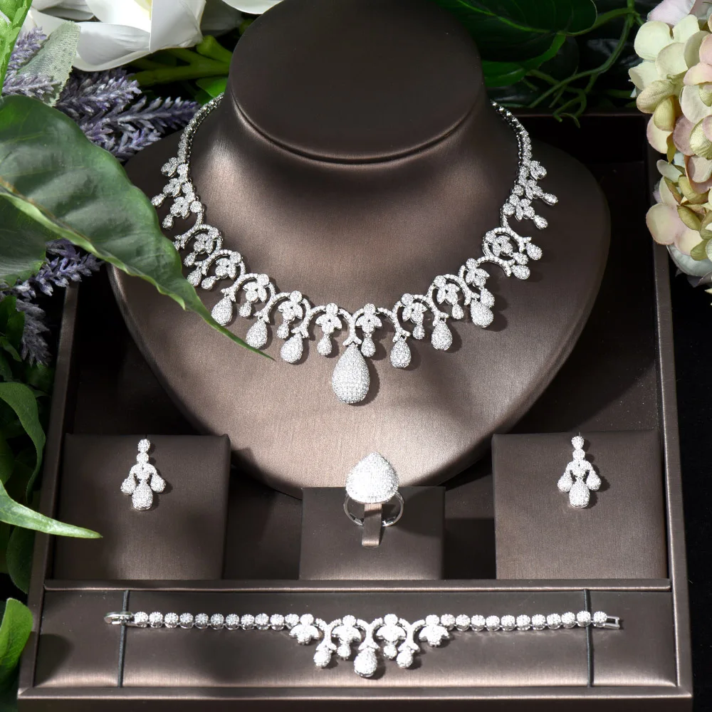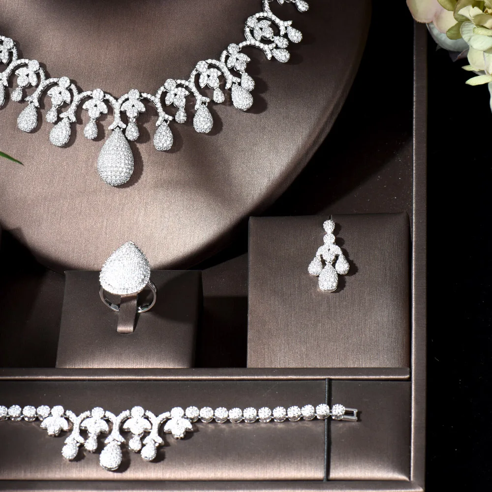 مواصفات طقم زركون فضي فخم جدا وراقي مكون من 4 قطع