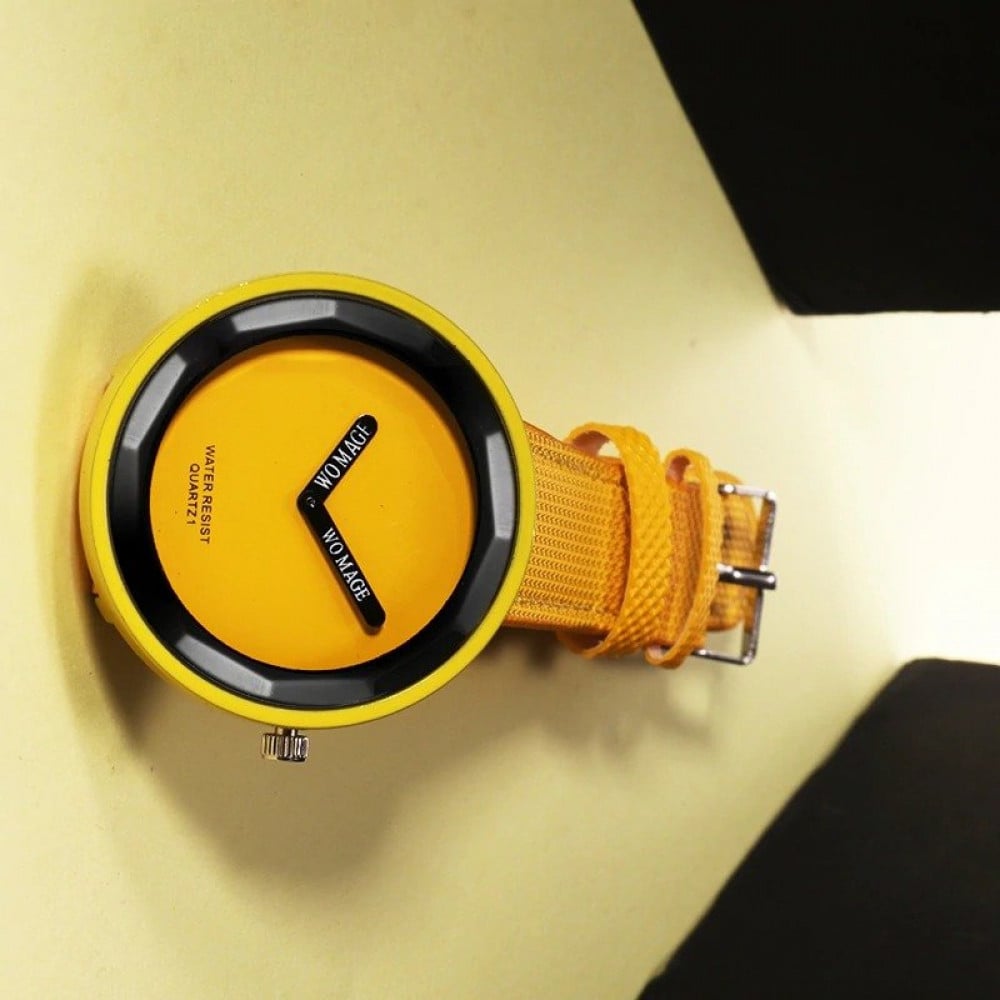 ساعة يد نسائية بشريط جلد أصفر – لمسة من الأناقة والتميّز